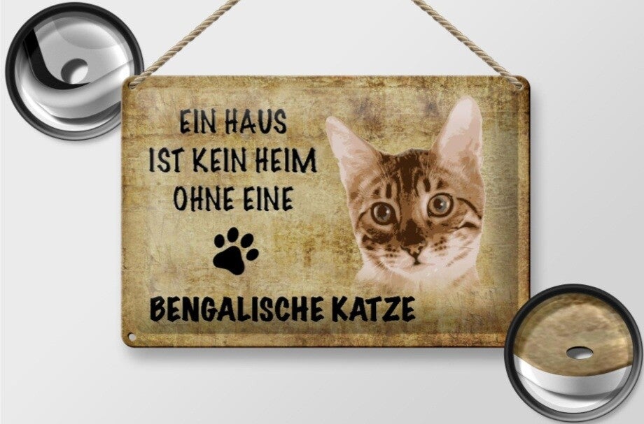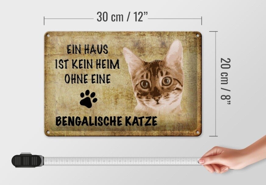 Katzen‑Blechschild „Ein Haus ist kein Heim ohne eine Bengalische Katze“ (20×30cm)