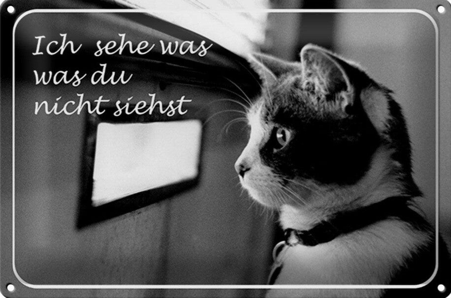 Katzen-Blechschild „Ich sehe was, was du nicht siehst“ (12×18cm)