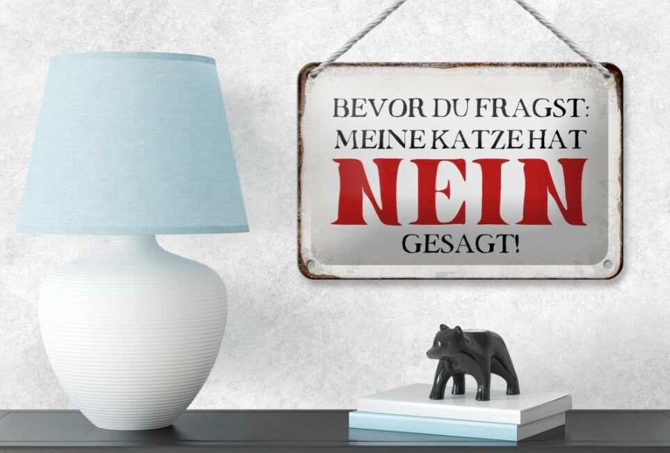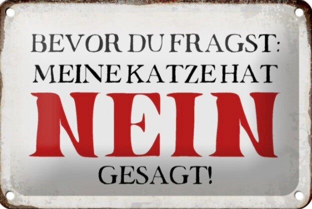 Katzen-Blechschild „Bevor Du fragst: meine Katze hat NEIN gesagt!“ (12×18cm)