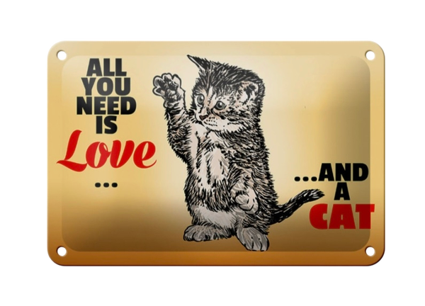Katzen-Blechschild „All you need is LOVE… and a CAT“ (12×18cm)