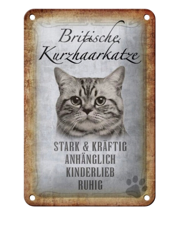 Katzen‑Blechschild Britisch Kurzhaar / British Shorthair (12×18cm)