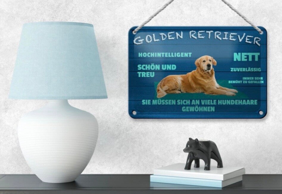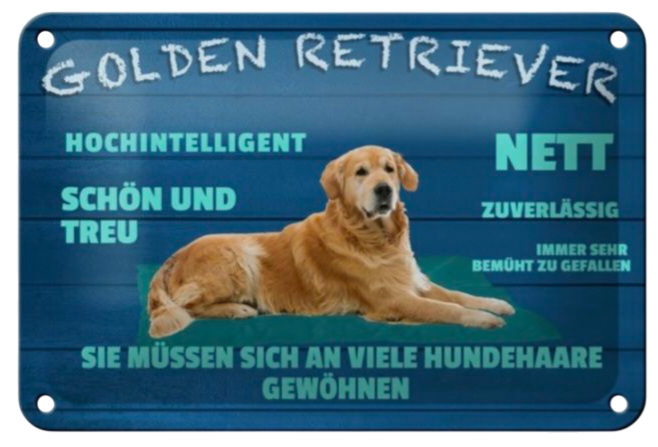 Hunde-Blechschild Golden Retriever – mit typischen Eigenschaften (12×18 cm)