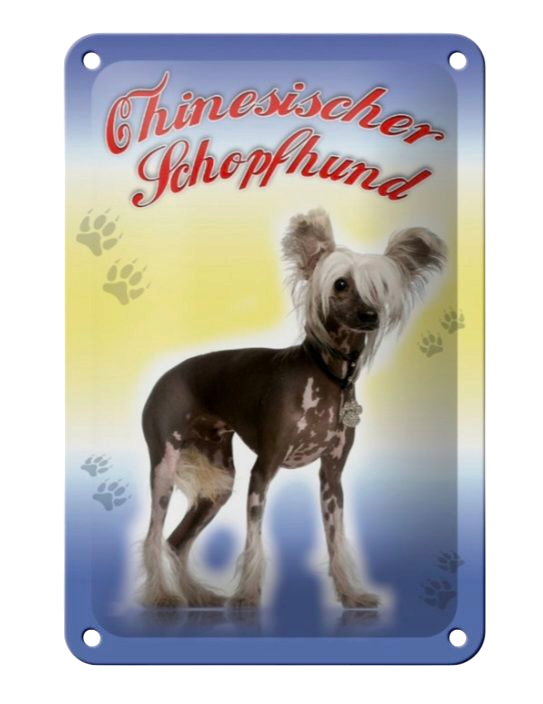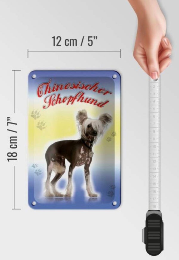 Hunde-Blechschild Chinesischer Schopfhund – Exotisch & einzigartig! (12×18cm)