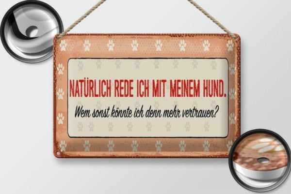 Hunde-Blechschild „NATÜRLICH REDE ICH MIT MEINEM HUND…“ (12×18 cm)