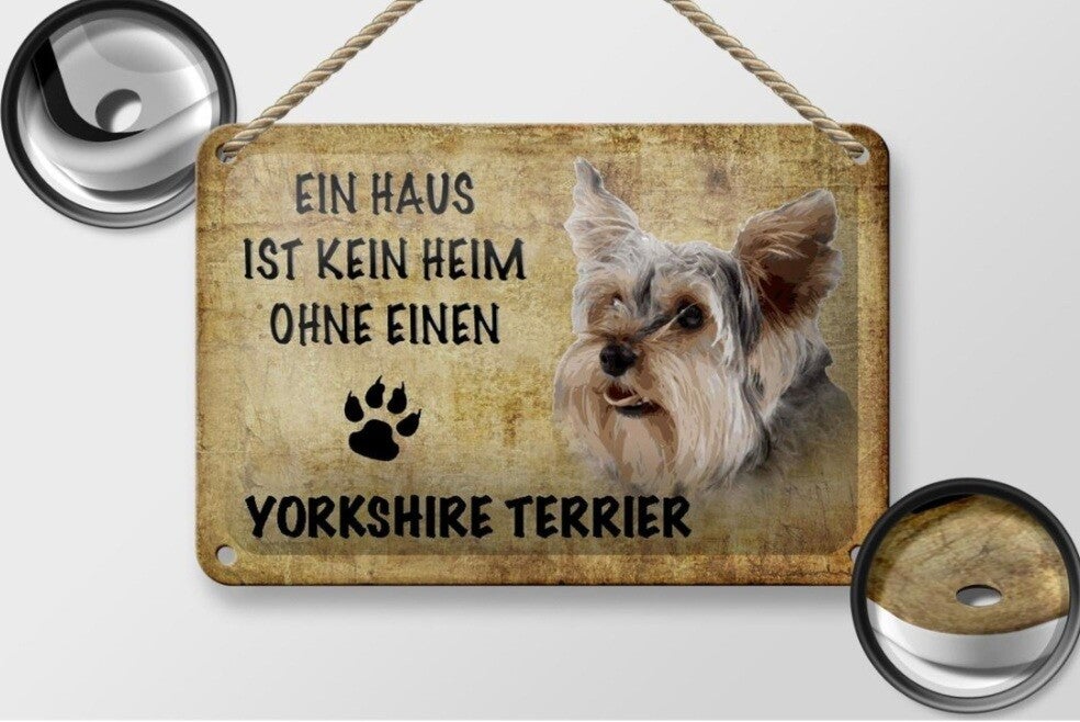 Hunde-Blechschild „Ein Haus ist kein Heim ohne einen Yorkshire Terrier“ (12×18cm)