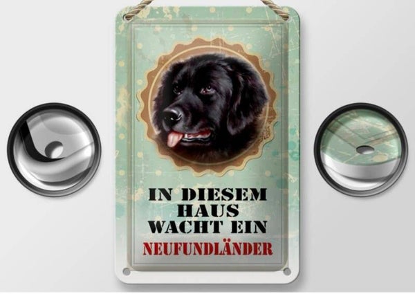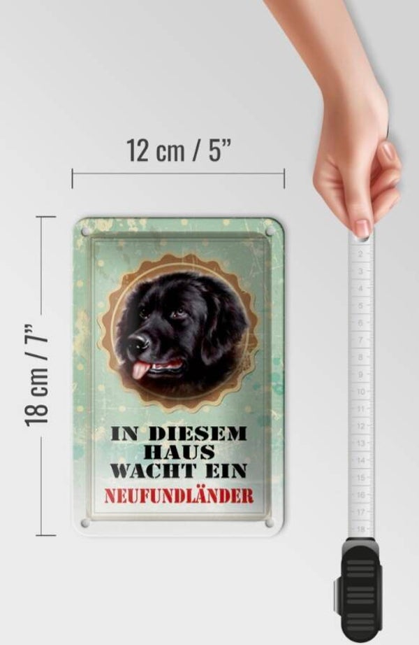 Hunde-Blechschild Neufundländer – „In diesem Haus wacht ein Neufundländer“ (12×18cm)