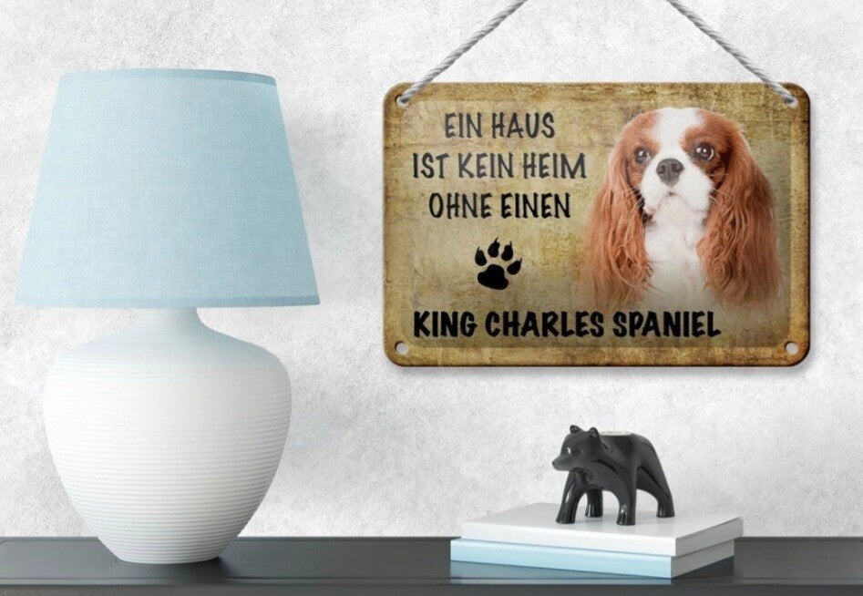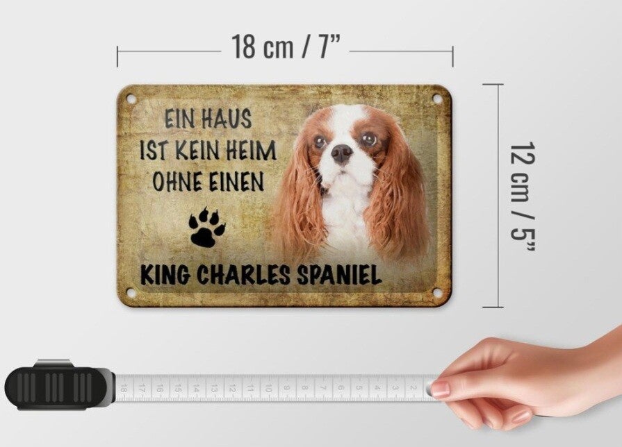 Hunde-Blechschild „Ein Haus ist kein Heim ohne einen King Charles Spaniel“ (12×18cm)
