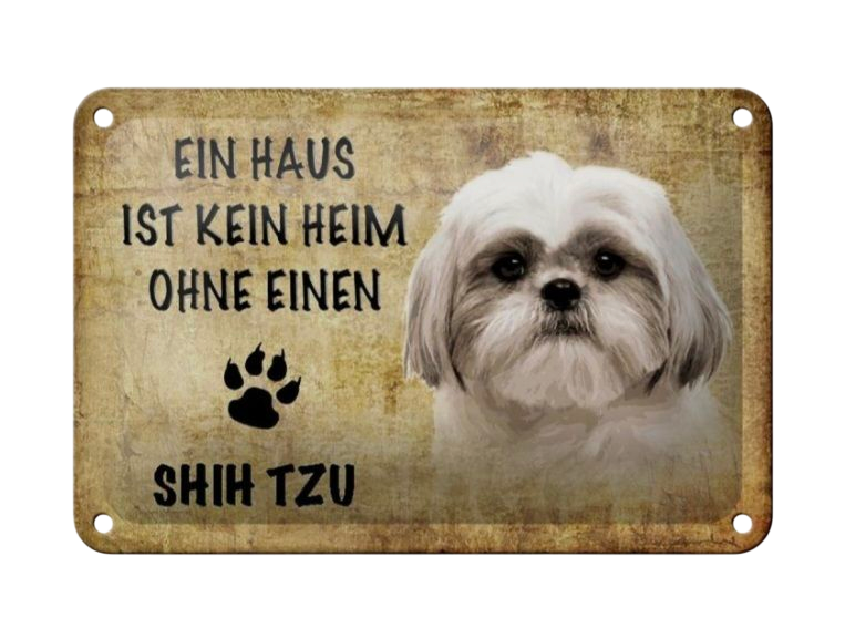 Hunde‑Blechschild „Ein Haus ist kein Heim ohne einen Shih Tzu“ (12×18 cm)