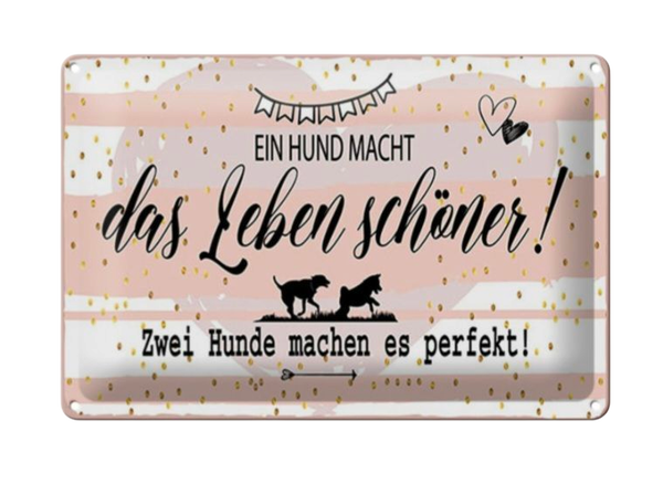 Hunde-Blechschild „Ein Hund macht das Leben schöner! Zwei Hunde machen es perfekt!“ (12×18cm)
