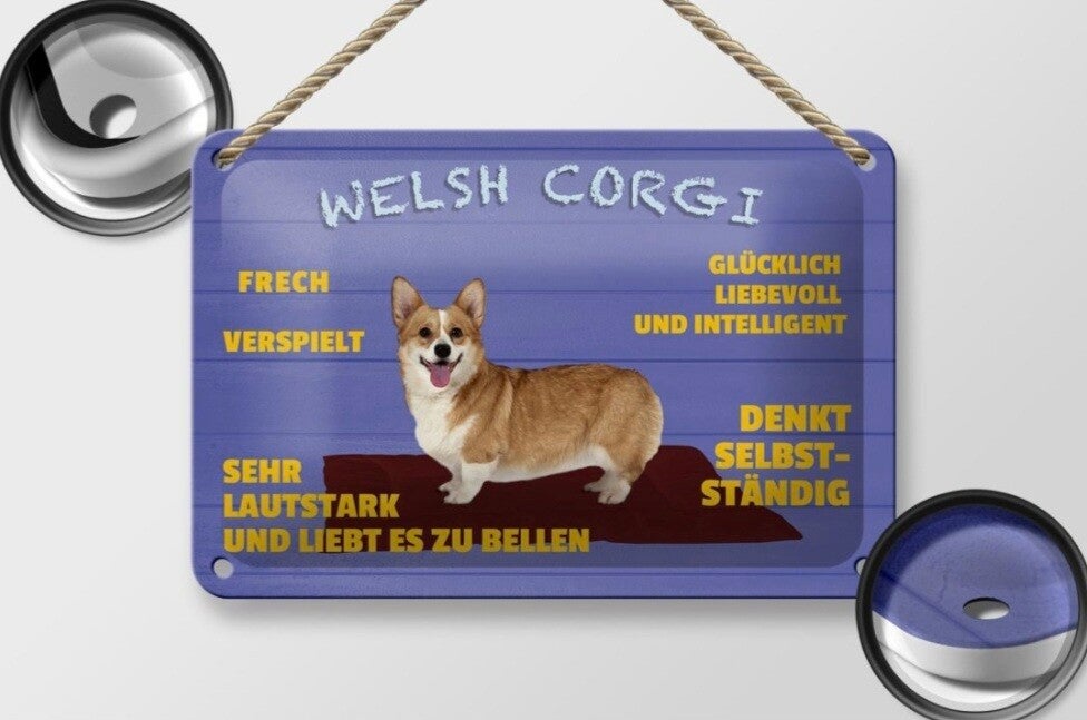 Hunde‑Blechschild Welsh Corgi (12×18cm)