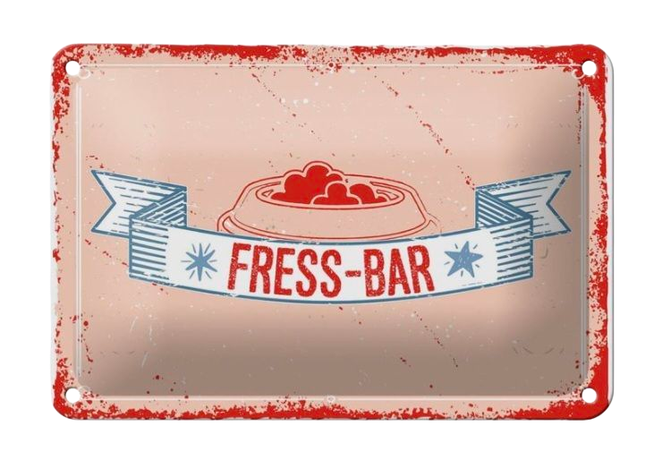 Katzen-Blechschild „Fress-Bar“ (12×18cm)