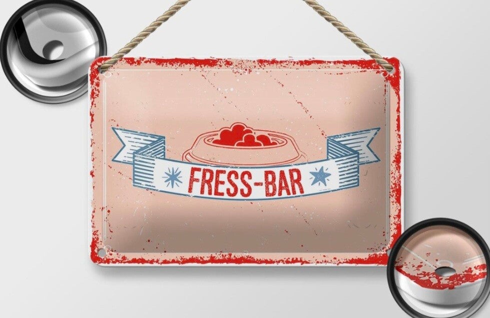 Hunde-Blechschild „Fress-Bar“ (12×18cm)