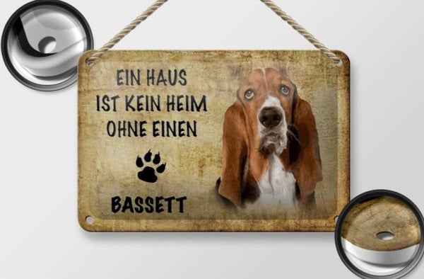 Dieses charmante Blechschild ist ein Muss für alle Basset-Fans. Mit seinem liebevollen Spruch bringt es Wärme und Charakter in jedes Zuhause – perfekt als Geschenk oder zur eigenen Dekoration.