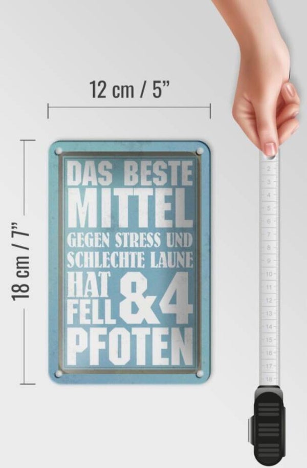 Hunde-Blechschild Gegen Stress (12x18cm)