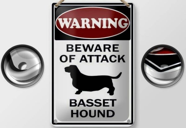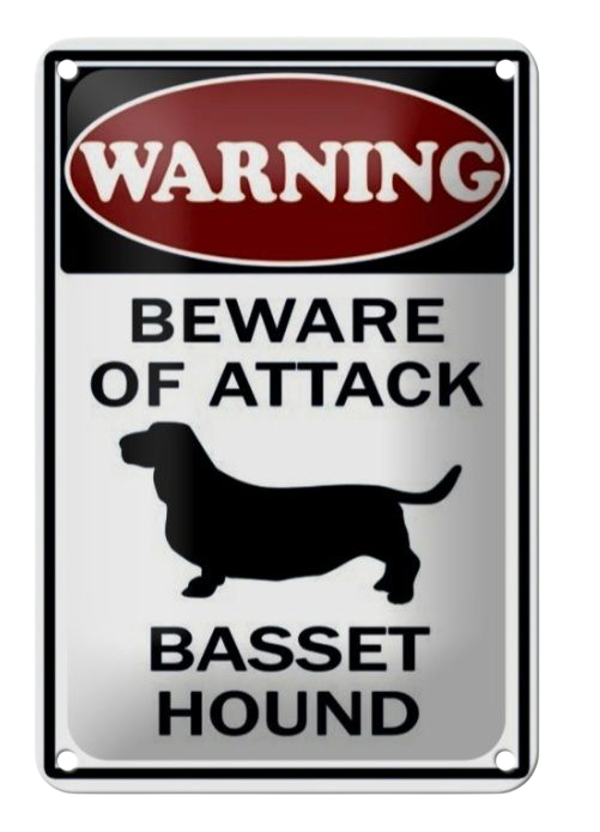 Hunde-Blechschild Basset – Warning Beware of Attack (12x18cm)
