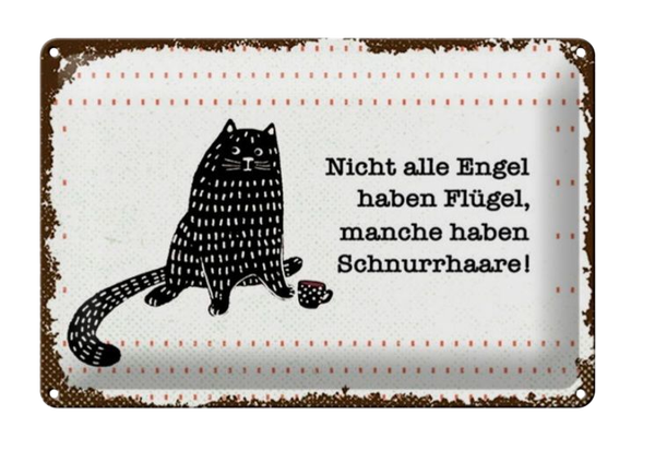 Katzen-Blechschild – Nicht alle Engel haben Flügel, manche haben Schnurrhaare (12x18cm)